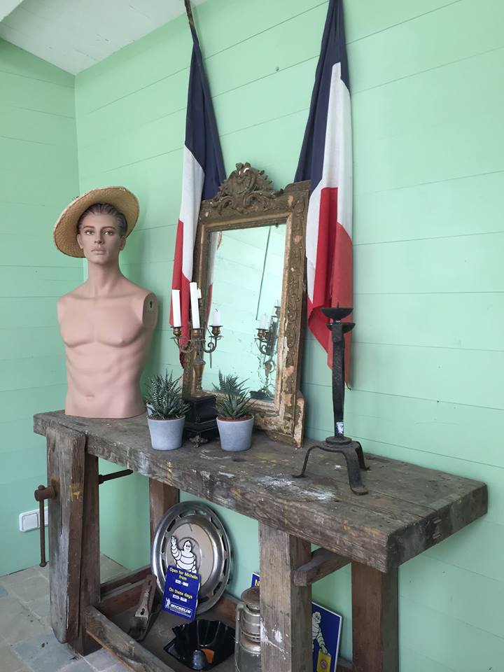 This year has been a toughie and going to Galathée soothes away the aches and pains. Our gorgeous house has a new roof and the garden is maturing with Eric taking great care of it. Valerie is still doing the housekeeping/managing and all our clients just love her. New additions to the house include fans we bought to combat the stifling heat and “Robbie” who we found at La Flotte brocante market. He really adds a certain something to the garden room!